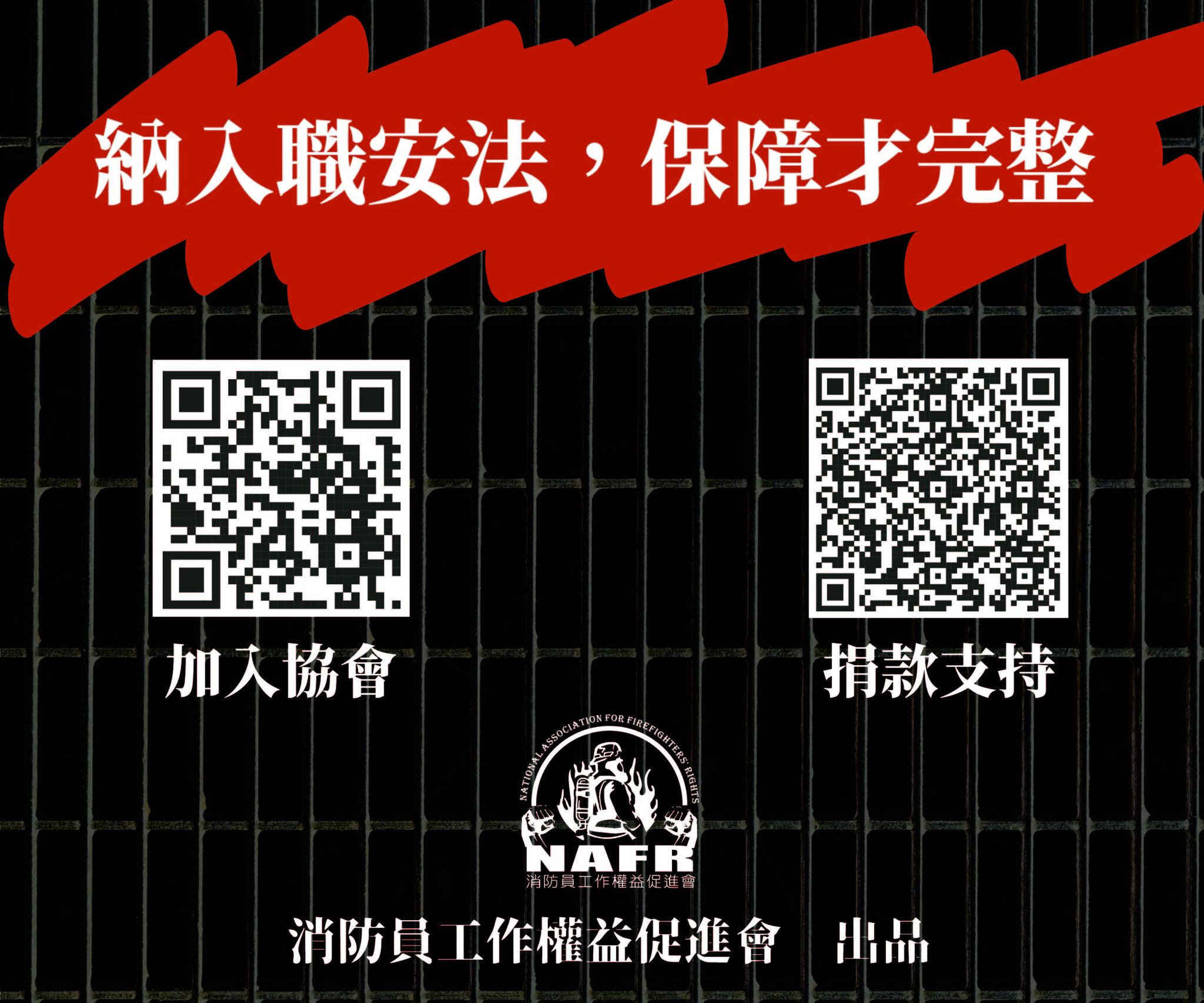 目前政府規劃於消防法中納入消防員職業安全保障,本會認為是「不完整」的保障。