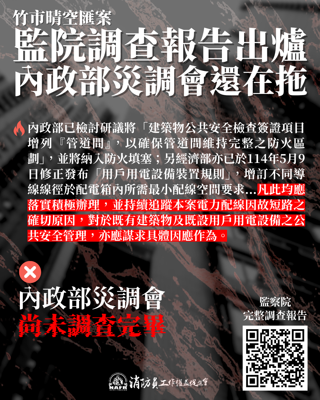 然而,時隔殉職案一年多的時間,內政部災調會卻尚在調查中,呼籲內政部災調會應儘速進行調查工作,釐清相關事發經過及改善項目。