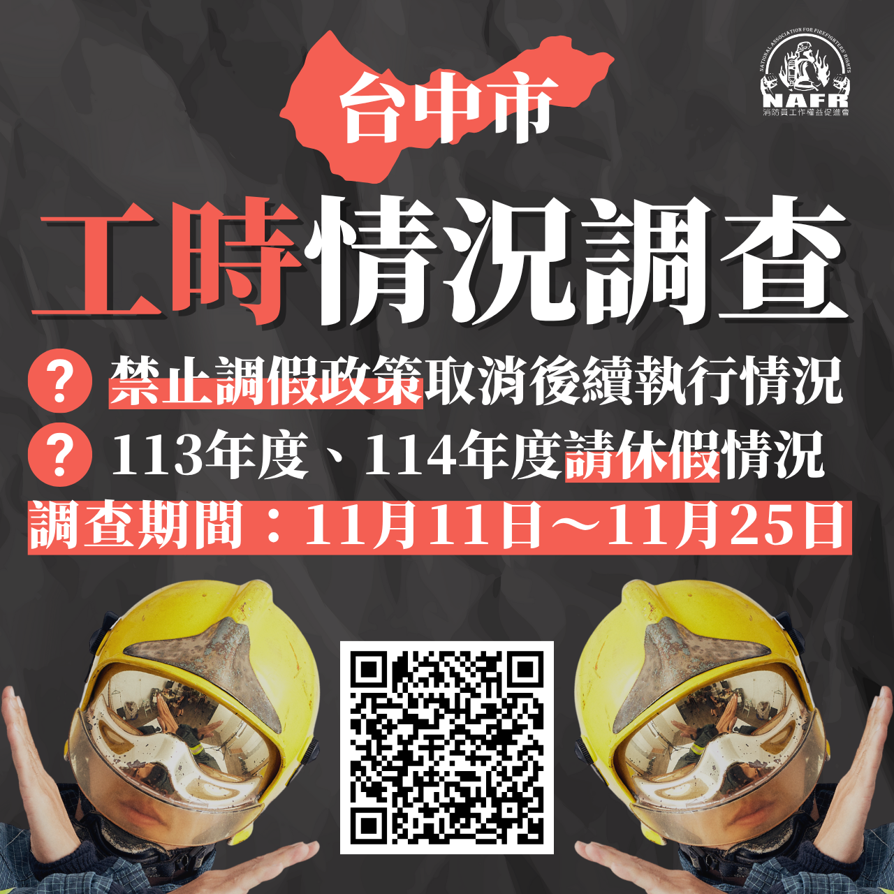 臺中市 工時與人力 🚒台中市工時情況調查🚒 by NAFR_taiwan2025-11-11 Comments 0 近期台中市禁止調假爭議在本會發布網宣及多位跨黨派議員的質詢下取消,然而本會接獲會員反映分隊內部仍然維持禁止調假相關規定及請休相關爭議,為調查工時相關規範後續執行狀況,歡迎填寫表單反映實際情況。 載入中… 分享此文: 分享到 X(在新視窗中開啟) X 分享到 Facebook(在新視窗中開啟) Facebook 請按讚:喜歡 正在載入... 0 comments on “🚒台中市工時情況調查🚒” 發表迴響取消回覆 這個網站採用 Akismet 服務減少垃圾留言。進一步了解 Akismet 如何處理網站訪客的留言資料。 文章導覽 Previous Post Next Post